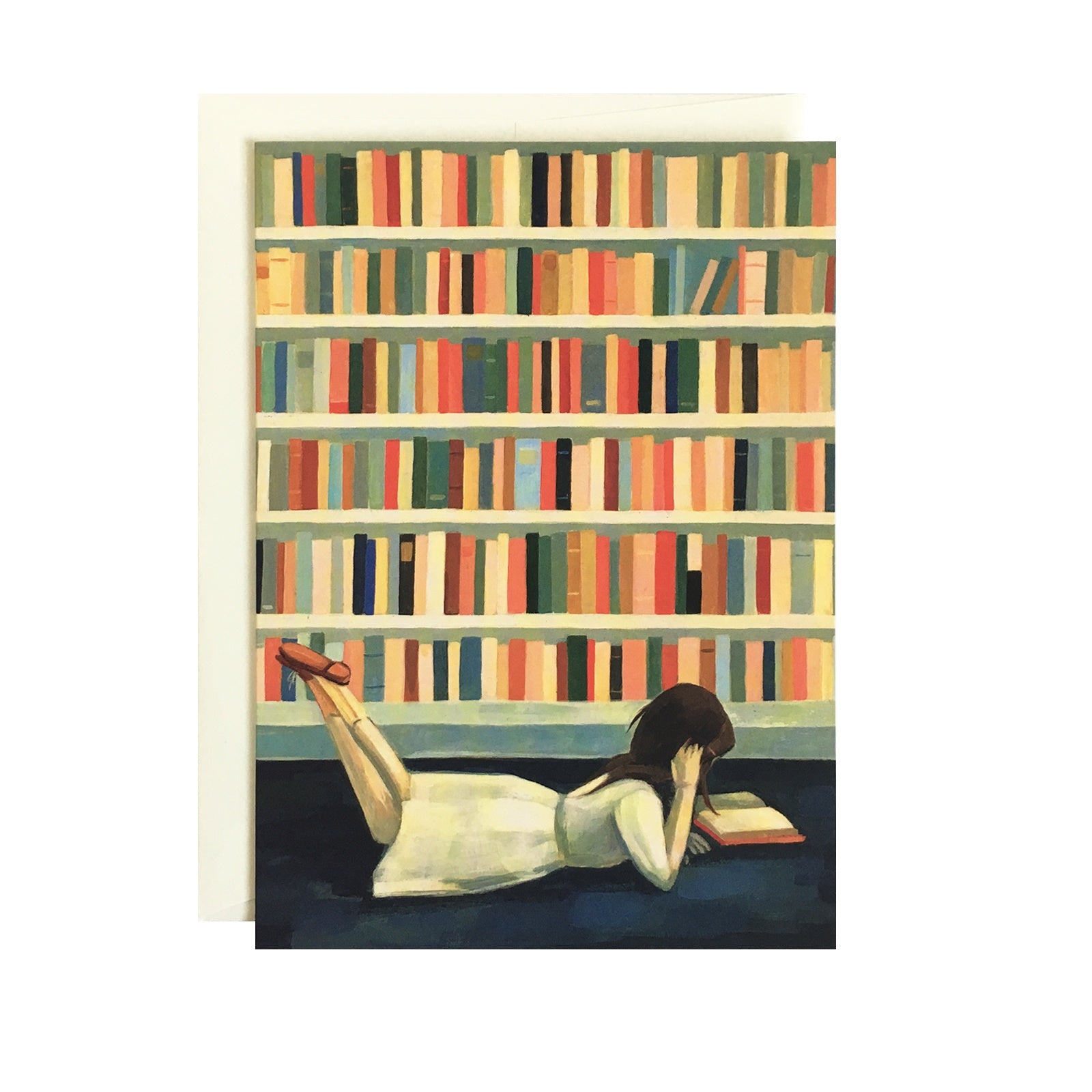 This card instantly transports you to the warm, loving embrace of your first love — the library.