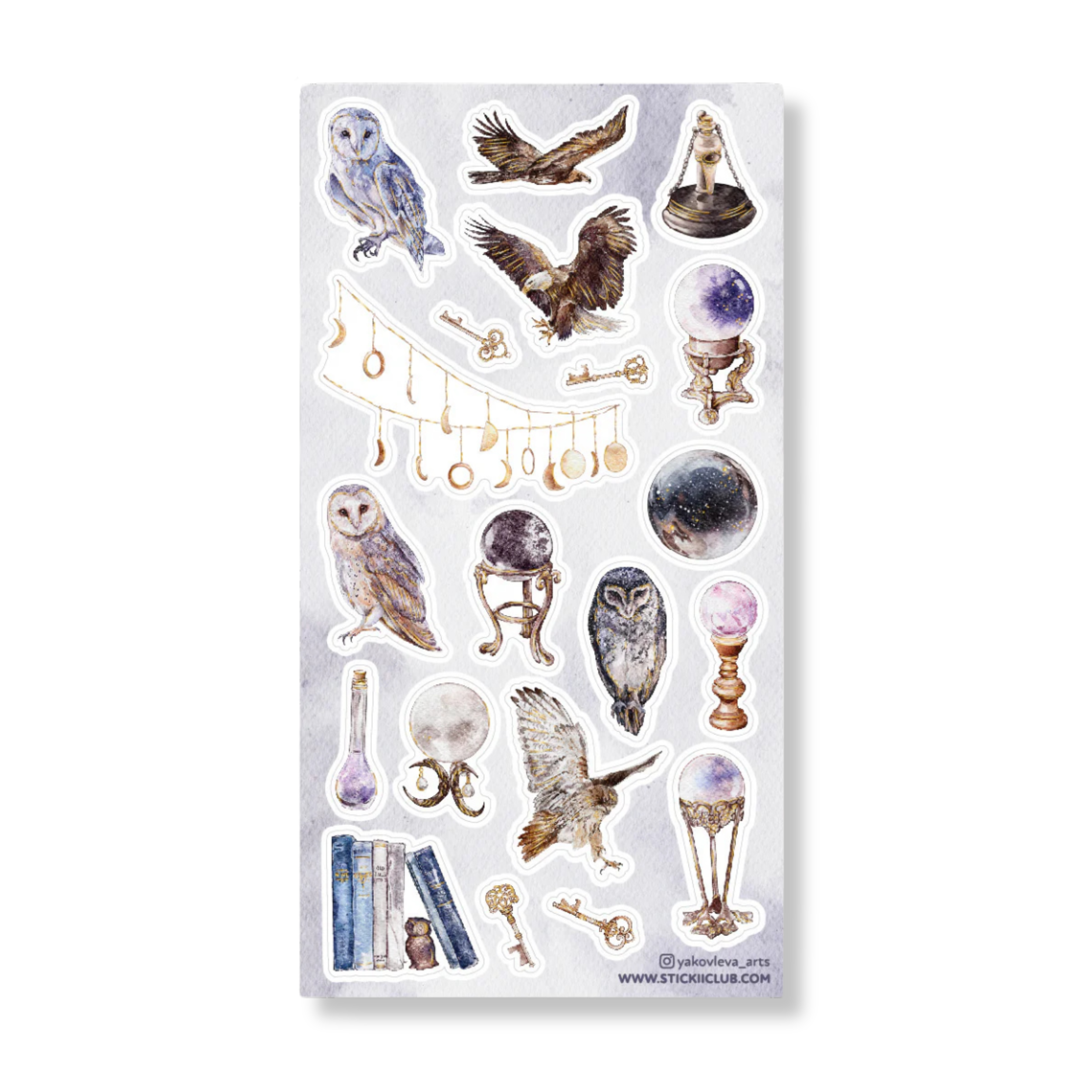 Let your imagination take flight with the Mystical Birds sticker sheet, featuring watercolor illustrations of enchanting birds and magical trinkets.