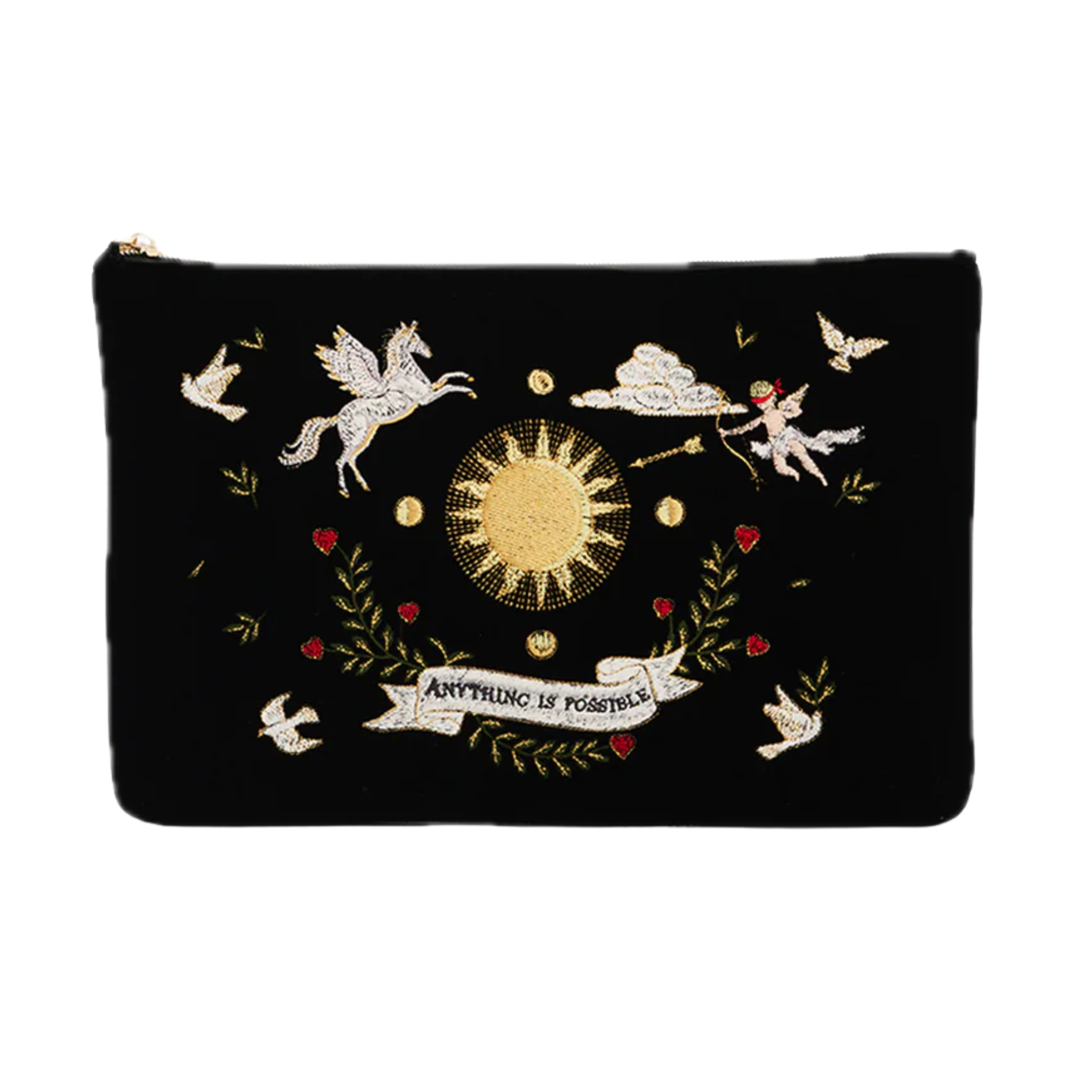 Black Celestial Velvet Embroidered Ipad Pouch - Fable England