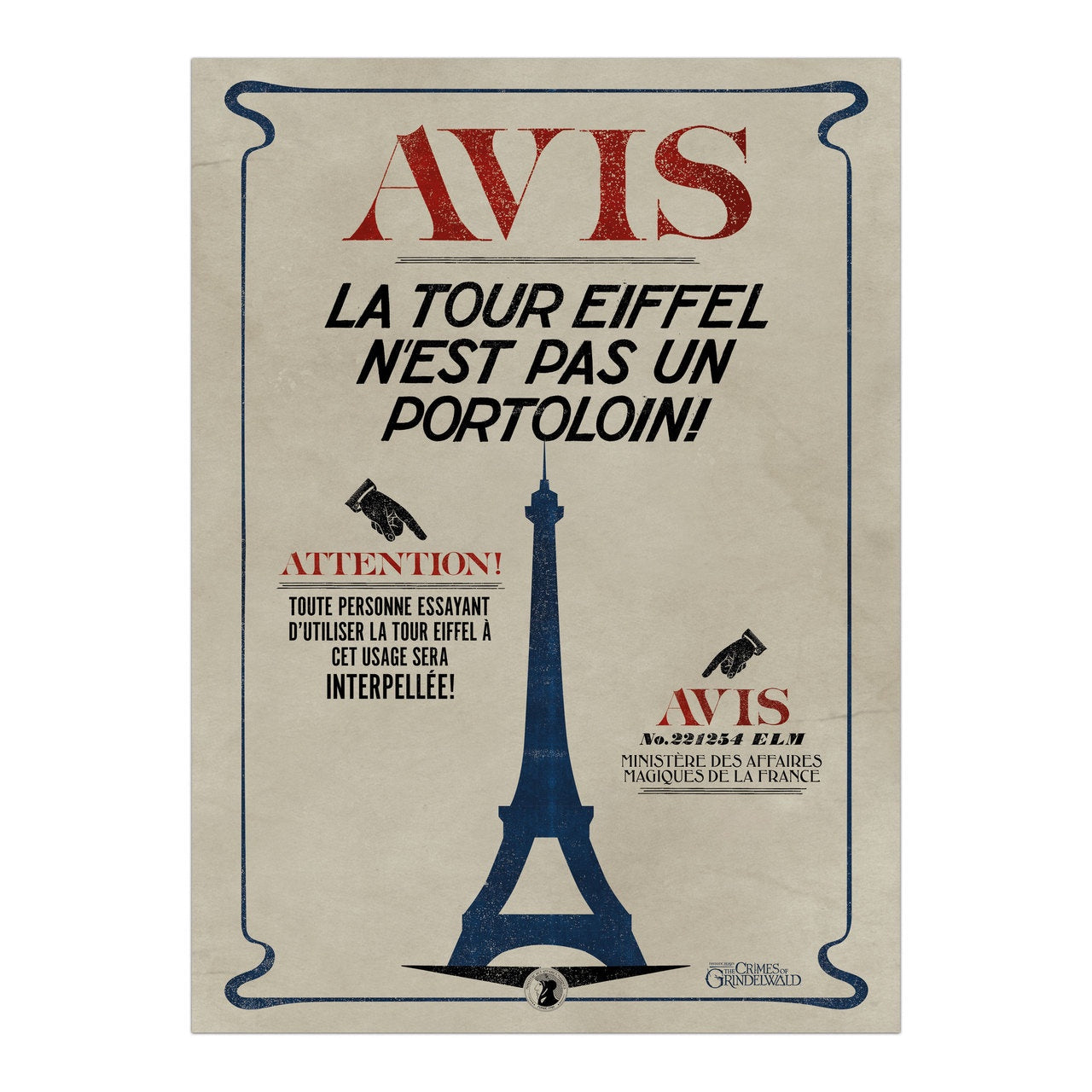 This poster a replica of a notice published by the French Ministry of Magic regarding the Eiffel Tower (it is NOT a portkey).